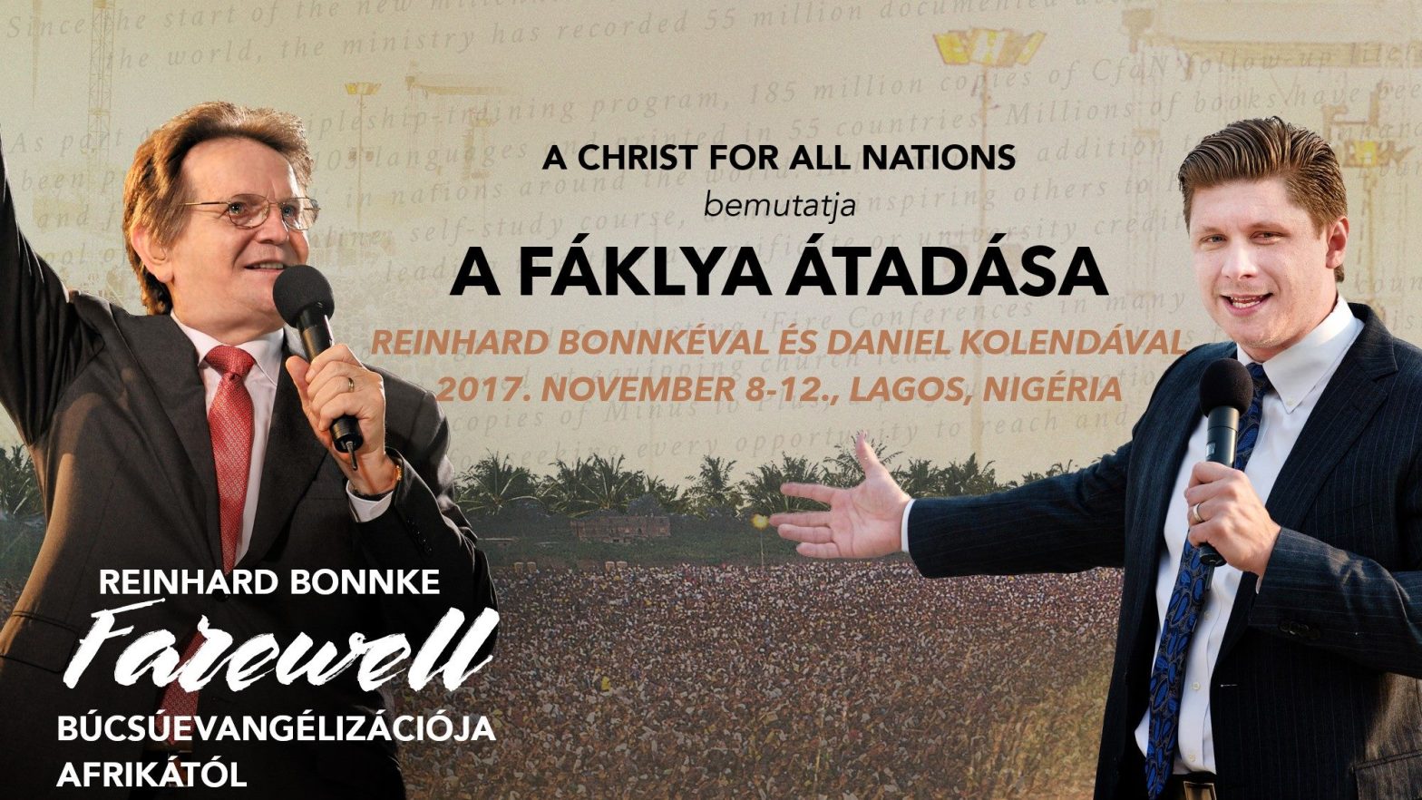 a keresztények körében, felekezeti hovatartozástól függetlenül. Az afrikai evangelizációs kapmányairól híres evangélista, akinek a rendezvényein megtérő és meggyógyuló embereket tízmilliókban lehet számolni, hamarosan átadja a szolgálatát a következő generációnak, a “fáklyát”, azt az égő tüzet, ami Bonnkét fűtötte Isten elhívásából. Utódja, Daniel Kolenda, aki rengetegszer szolgált már Bonnke mellett, évek óta élvezi az immár 77 éves idős szolgáló támogatását.