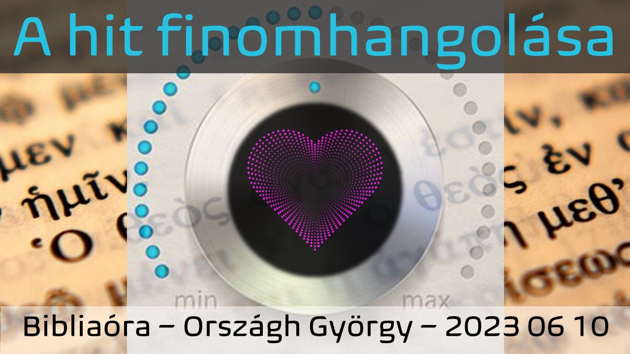 2023. 06. 10-én szombaton délután, 15:00 órai kezdettel lesz a következő Bibliaóra Miskolcon, a Szemere utca 8. szám alatt (kapucsengő 113., első emelet). Az előadás címe: A hit finomhangolása Minden kedves érdeklődőt szeretettel várunk! Országh György