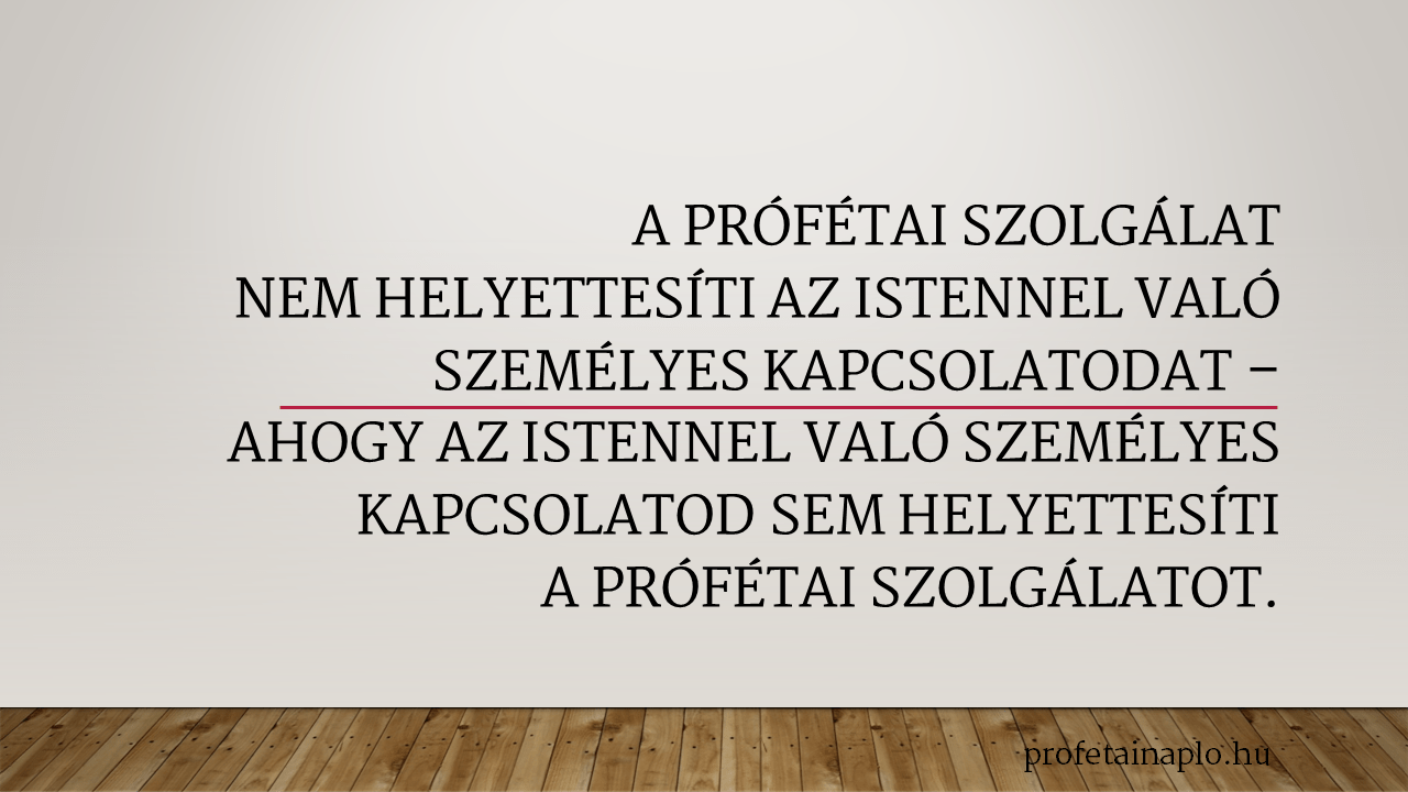 Milyen szemlélettel érdemes olvasni a Prófétai Naplót? A Prófétai Napló (PN) azzal szándékkal indult tíz éve, és készül ma is napról napra, hogy a prófétai szolgálat hitelessége helyreálljon. Aki arra gondol ez alapján, hogy létezik hiteltelen prófétai szolgálat is, az jól gondolja… De nem csak az üzenetek tartalma lehet hiteltelen, vagy a lelkület teheti hiteltelenné, amivelBővebben:Bővebben: “Szabadság, személyesség, felelősség”