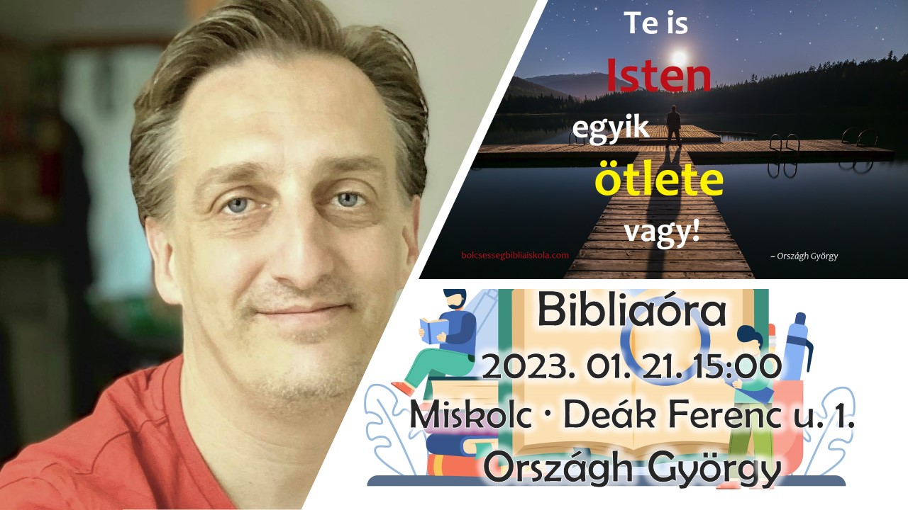 Ebben az évben is folytatódik a Miskolcon tavaly indult Bibliaóra-sorozat, amelyre minden érdeklődőt szeretettel várnak a szervezők. Szombaton, 2023. 01. 21-én, a Lydion Gerincterápia Központban (Deák Ferenc u. 1.) 15:00 órai kezdettel lesz egy előadás, amelyet Országh György tart, ezután szabadon lehet kérdéseket feltenni, hozzászólni. Az előadás a Bölcsesség Bibliaiskola anyagának is egy része, amelyrőlBővebben:Bővebben: “Szombaton Miskolcon Bibliaóra”